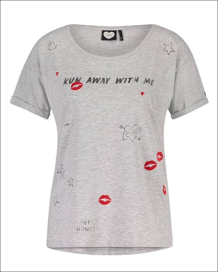 Deze grijze T-shirt van Catwalk Junkie oogt lekker speels en trendy met de kusmondjes en de tekst in graffiti style. Combineer dit mooie exemplaar met je favoriete jeans , een leren vestje en een paar sneakers.